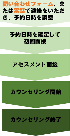 (1)お試しカウンセリングは一回ごとに完結するものですので、以下のカウンセリングのながれには当てはまりません。